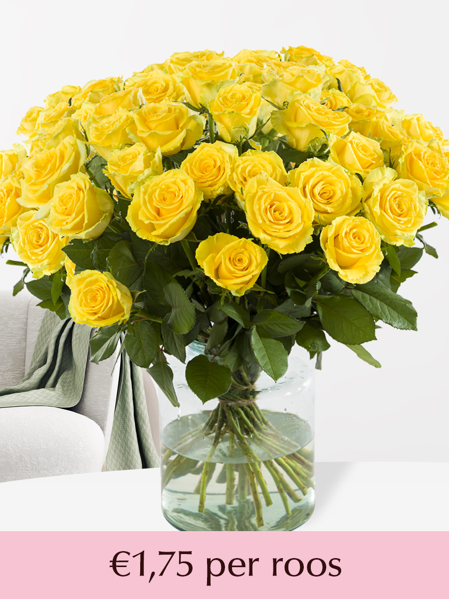 Surprose geeft je de kans om rozen te bestellen in aantallen tot 499 stuks. Ook deze gele rozen zijn beschikbaar in ieder aantal tot en met 1001 stuks. Deze gele rozen zijn van de soort Good Times en worden door Timaflor in Kenia gekweekt. De steellengte van deze rozen is ongeveer 50 centimeter waardoor deze rozen in ieder aantal een bijzonder geschenk vormen. Bestel hier deze gele rozen in een aantal vanaf 100 tot en met 499 stuks. Bestel deze rozen om als boeket cadeau te geven, of om bijvoorbeeld iedere collega 1 roos te kunnen schenken. Voor iedere gelegenheid brengen deze gele rozen vrolijkheid met zich mee. Overtref nu jezelf en bestel deze gele rozen in een aantal groter dan 100 stuks! Laat iemand verrassen met de prachtige rozen van Surprose.