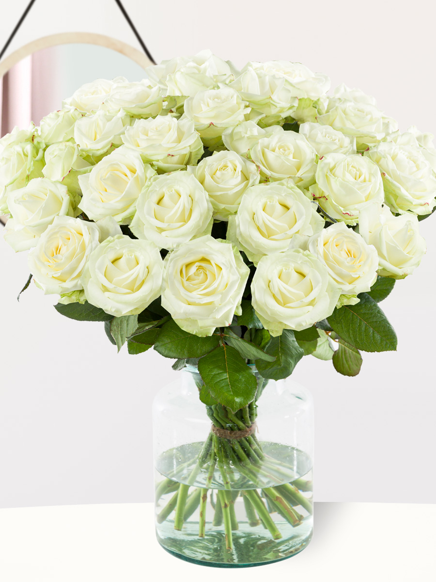 30 witte rozen – XL rozen – Avalanche bij plantenwinkel