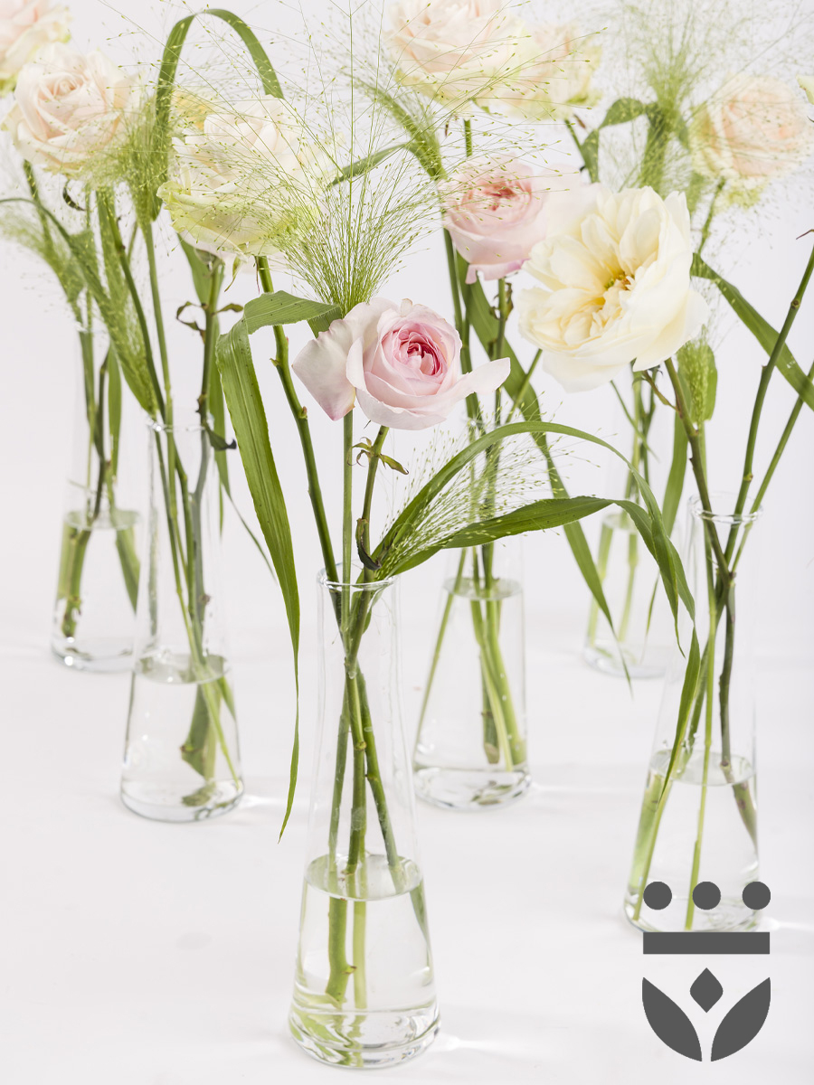 6 pastel tafelstukjes, inclusief vaasjes – Platinum | Hoog bij plantenwinkel