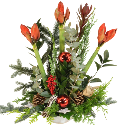 Amaryllis kerststuk ca. 60 cm hoog bij plantenwinkel