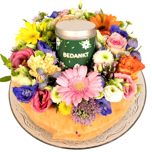 Bedankt taart blikje dropkrijtjes bij plantenwinkel