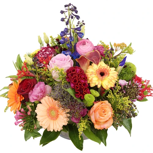 Bloemstuk rond opgestoken noemen wij een biedermeier. Bestel en laat deze bezorgen in heel Nederland.