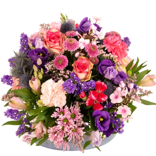 Bloemstuk roze paarse tinten deze biedermeier kunt eenvoudig bestellen en zelfs vandaag al laten bezorgen, mits voor 12:00 besteld. Thuiswinkel Lid.
