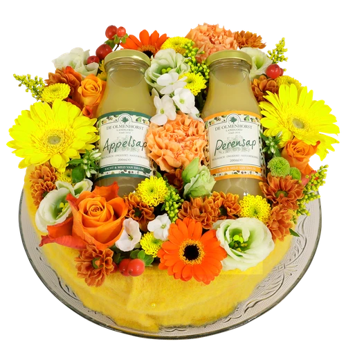 Bloementaart met Olmenhorst sappen bij plantenwinkel
