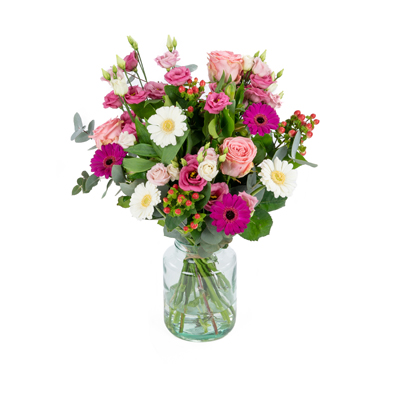 Prachtig boeket voor Valentijn in alle tinten roze. Voor je geliefde.