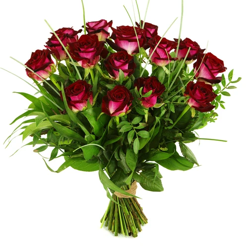 Boeket rode Rozen incl. bladmateriaal bij plantenwinkel