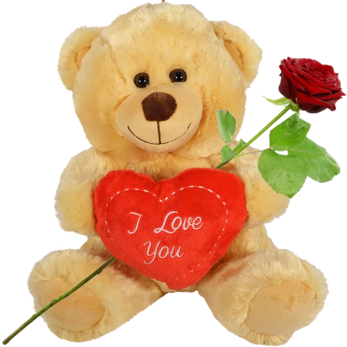 Bruine Knuffelbeer met een rood hart in zijn hand met de tekst I love you er op. Verstuur de liefde en verras jij iemand met de luxe pluche knuffelbeer ? Thuiswinkel lid. Kies je bezorgdatum.