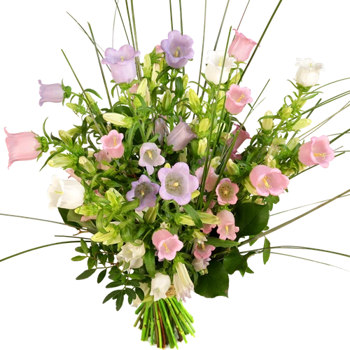 Campanula boeket in diverse kleuren gebonden tot een mooi boeket. Een boeket bloemen van deze tijd.