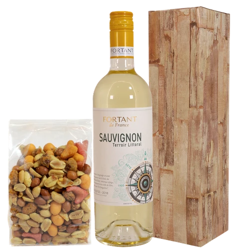 Wijn en noten bestellen! Een heerlijke Franse witte wijn samen met 300 gram borrel mix nootjes binnen 24 uur bezorgd in heel Nederland. Thuiswinkel Lid.