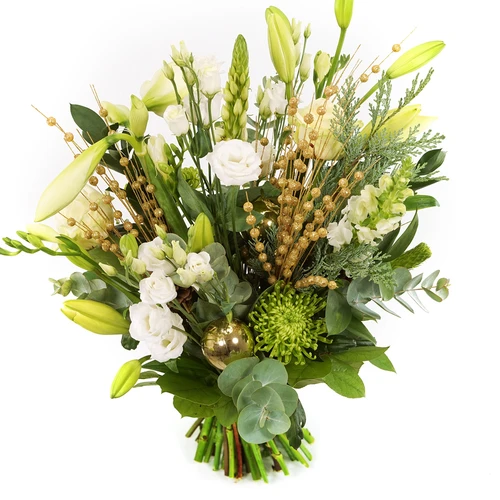 Geplukt kerstboeket wit – goud bij plantenwinkel
