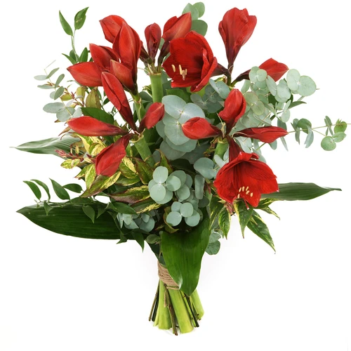 Kerstboeket rode Amaryllissen bij plantenwinkel