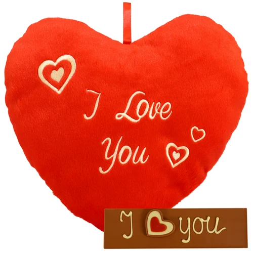 Een prachtige pluche kussen in de vorm van een hart met de tekst I love you er op. Samen bezorgd met een chocoladereep I love you. Verras jij jouw liefde ? Bestel vandaag nog….