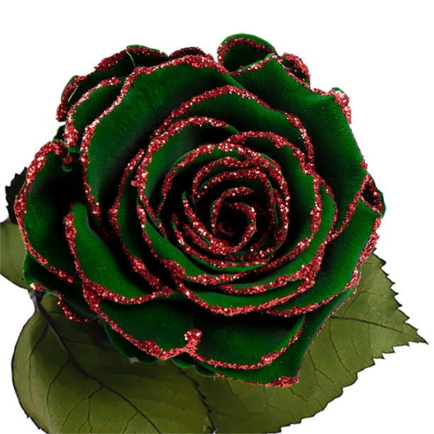 De longlife roos in groen met rode glitters straalt warmte en liefde uit, een perfect geschenk voor een speciaal kerstmoment. Deze roos blijft tot wel 2 tot 3 jaar mooi, waardoor het een blijvende herinnering is. Of je nu een man of vrouw verrast, deze groene roos is prachtig cadeau verpakt en perfect voor onder de kerstboom of als verrassing op afstand.