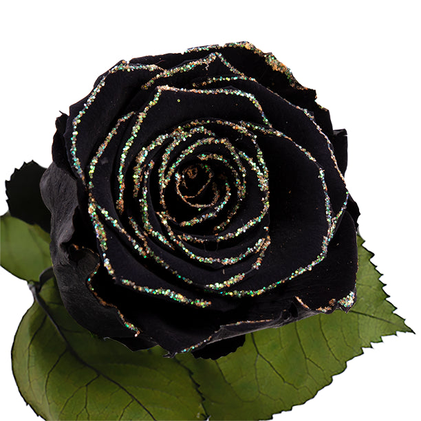 Longlife roos zwart groene glitter bij plantenwinkel