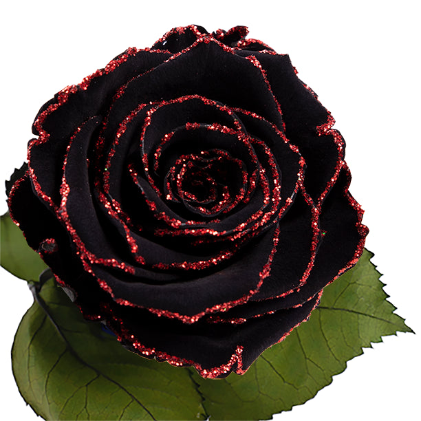 Longlife roos zwart rode glitter bij plantenwinkel