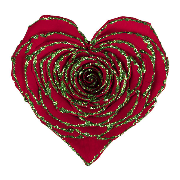 Ho ho ho, kerstman! Verras dit jaar met het schitterende Longlife Rozenhartje rood groene glitter. Dit handgemaakte Rozenhartje blijft tot wel 3 jaar mooi en is daarmee een blijvende herinnering aan een speciale kerst. Luxe verpakt in een zwarte of gouden box, perfect voor onder de boom of om op afstand een blijvende kerstgroet te sturen.