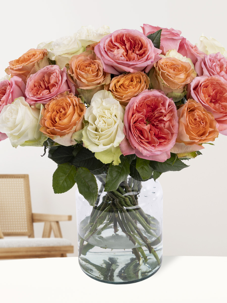 Mix boeket zalm-roze-wit | Rozen uit Ecuador bij plantenwinkel