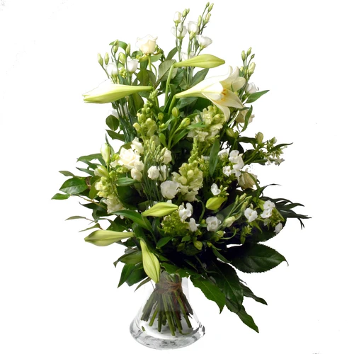 Rouwboeket wit bestellen, bezorgen. Snele levering, lage prijzen. Bestellen vóór 12:00 uur is vandaag nog bezorgd in heel Nederland