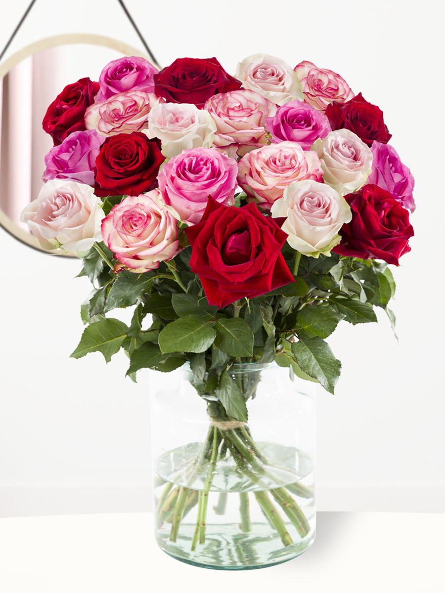 Dit roze – rood boeket bestaat uit de rozensoorten Paloma, Sweet Revivial, Revival en EverRed die kleuren van zachtroze tot dieprood. Deze prachtige rozen worden gekweekt door Ol Njorowa, Timaflor en Rift Valley Roses, allen afkomstig uit Kenia. Ook deze rozen uit Kenia zijn altijd direct leverbaar waarvoor geldt, voor 17.00uur besteld, is morgen in huis. De rozen hebben een steellengte van 50 centimeter, waardoor ze op de juiste vaas prachtig zullen staan. Vergeet hierbij niet de persoonlijke wenstekst toe te voegen. Deze tekst wordt op een gratis kaartje samen met de rozenvoeding toegevoegd aan de doos waarin ook het boeket geleverd zal worden. Wilt je het geschenk nog specialer maken? Kies dan hier voor dit boeket inclusief rode wijn om jouw waardering naar een nog hoger level te brengen.
