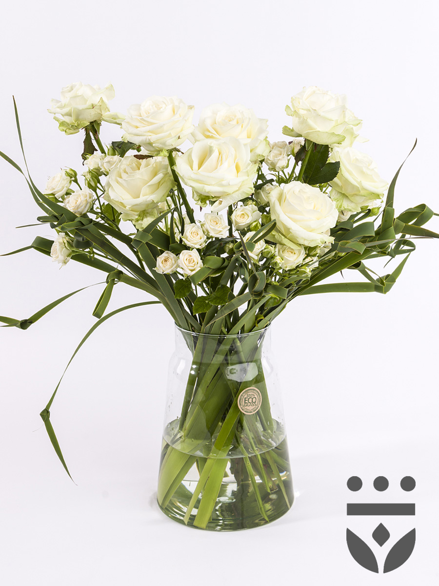 Wil je graag een boeket als centerpiece in het wit, maar wel met een luxe uitstraling? Dan zit je bij de gouden bruidscollectie goed. Dit boeket is ontworpen door Peter van der Sluis, een bekend persoon in de bloemenwereld als het gaat om bloemwerken, decoratie en nog veel meer. Wist je dat hij zelfs betrokken is geweest bij de bloemen van het huwelijk van de Nederlandse koning en koningin? Boeketten als deze vind je nergens anders!