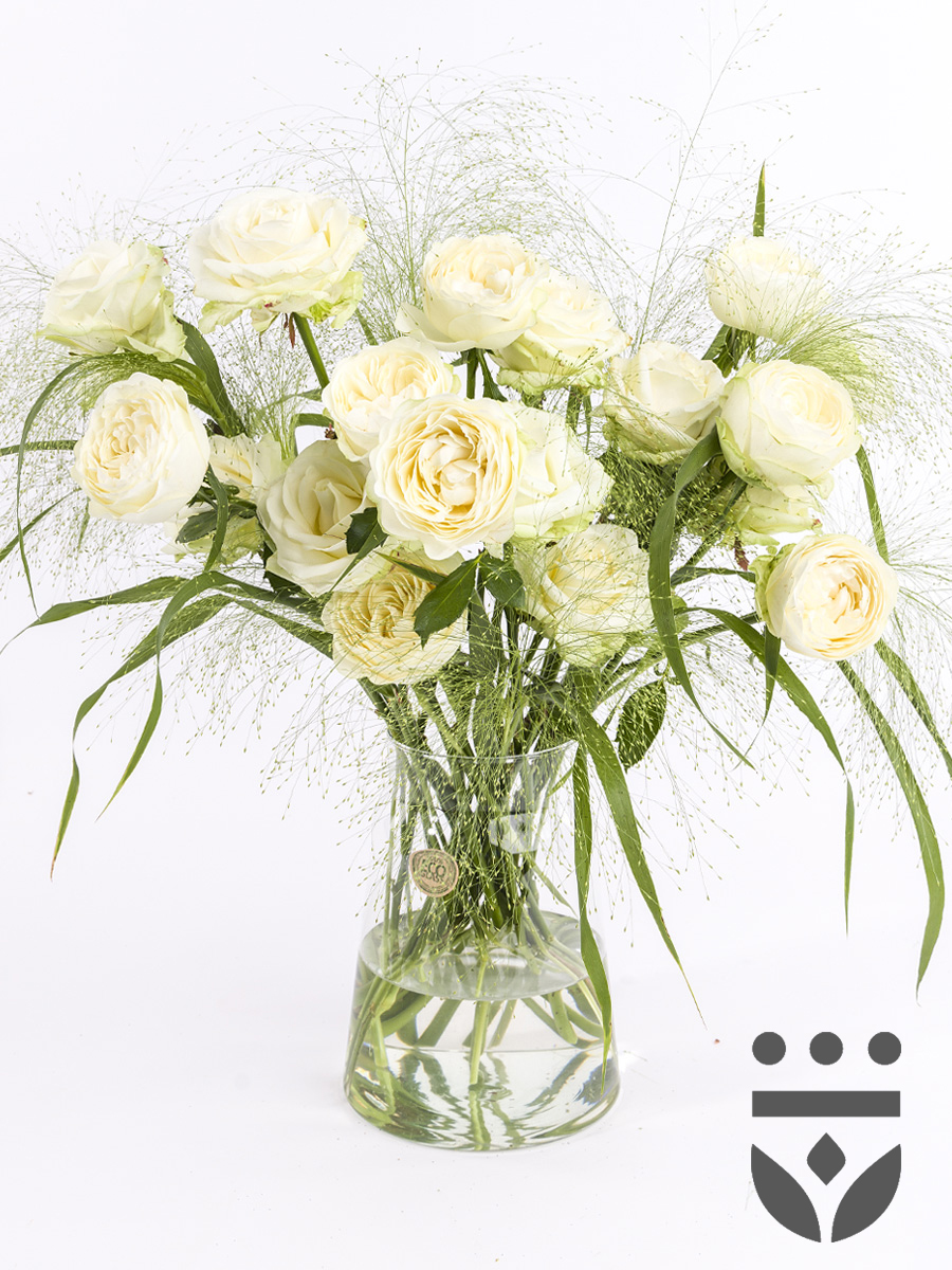 Een centerpiece is natuurlijk een groot boeket dat een echte eyecatcher moet zijn als het gaat om decoratie. Met deze centerpiece weet je zeker dat je een eyecatcher hebt in je decoratie voor je bruiloft. De witte botanische rozen zijn exclusieve rozen met een luxe uitstraling, om jouw speciale dag, nog specialer te maken. Het boeket past perfect bij de andere bloemwerken uit de platinum collectie, maar kunnen uiteraard ook gebruikt worden bij andere kleuren bloemen, om het geheel rustig te houden. Witte rozen staan voor puurheid en eerlijkheid. Perfect toch?