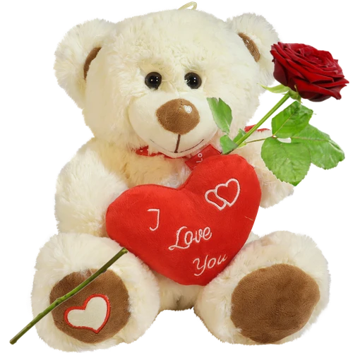 Zittende knuffelbeer ca. 28cm rood hart bij plantenwinkel